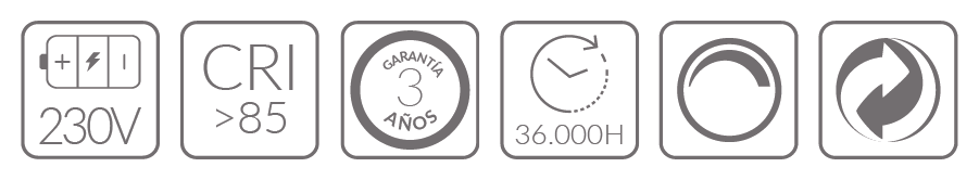 La mayoría de los modelos PRO 230V ofrecen altos grados de protección IP (como IP67 para Industry y Signal, o IP65 para Elevator), lo que las hace resistentes al polvo y al agua. Además, muchos modelos cuentan con resistencia a impactos (IK10). Tienen una larga vida útil, generalmente 50.000 horas, y están fabricadas para soportar rangos de temperatura amplios (desde -40ºC hasta +70ºC en algunos casos), lo que garantiza su durabilidad en entornos exigentes.