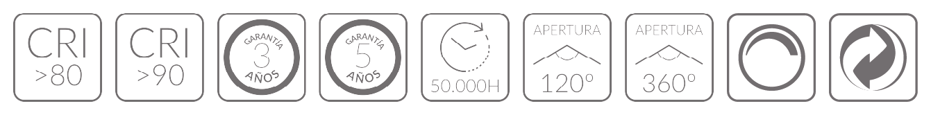 • 230V: Conexión directa a la red para largas tiradas sin drivers externos, simplificando la instalación.