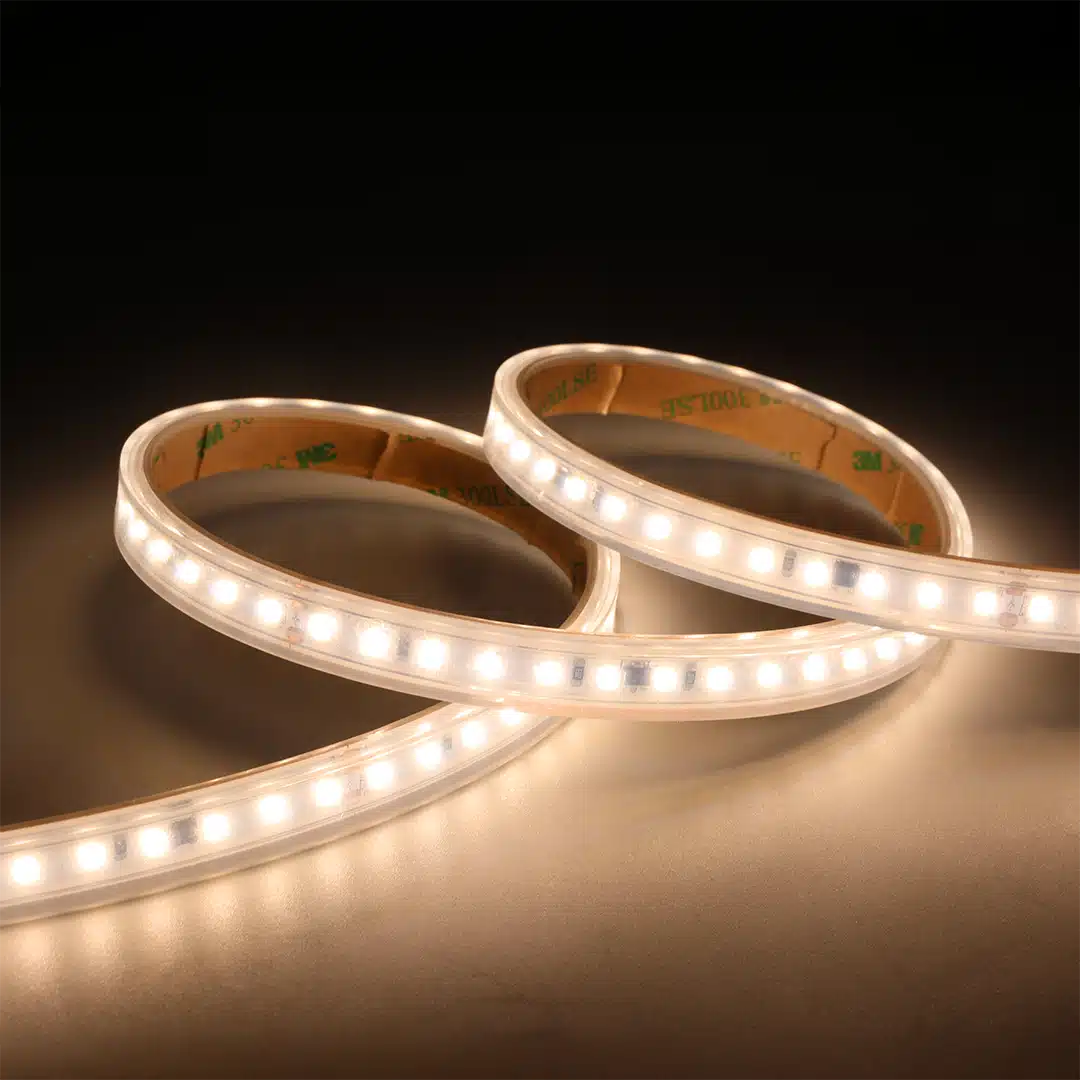 Tira LED ADVANCE de BLUELed, con una potencia de 9,6W/m y operando a 24V, emite una luz blanca muy cálida de 2300K. Ideal para crear ambientes acogedores y relajantes. Gracias a su robusta clasificación IP67, está diseñada para uso en exteriores o ambientes húmedos, siendo resistente al polvo y a la inmersión temporal en agua. Es completamente regulable en intensidad y cuenta con una sólida garantía de 3 años.