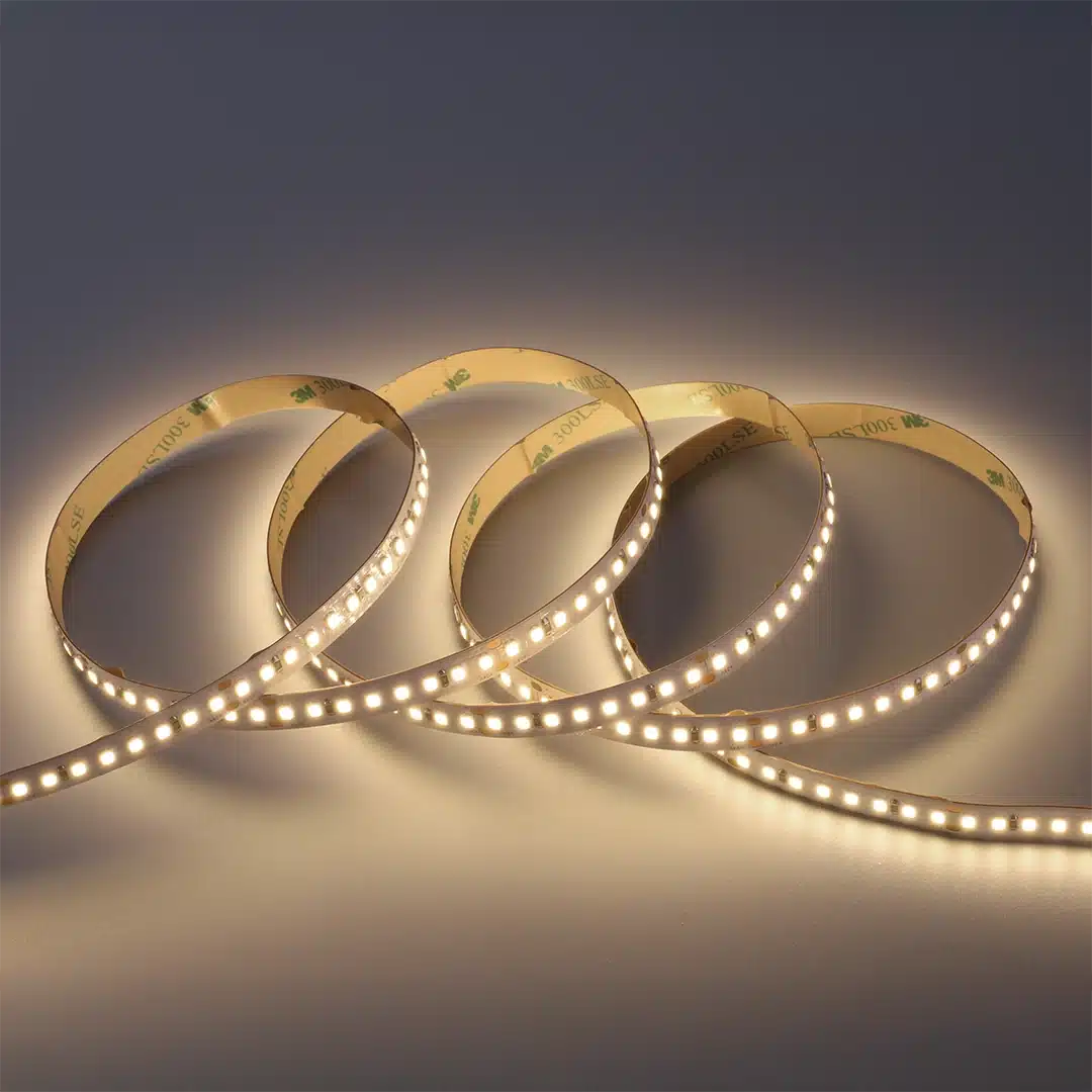 Tira LED profesional de alta eficiencia (14,4W/m) y 24V, que emite una luz blanca cálida de 3000K, ideal para interiores (IP20). Ofrece gran versatilidad al estar disponible en formatos de 5 metros y 50 metros. Es totalmente regulable para adaptar la intensidad lumínica y cuenta con una garantía sólida de 5 años. Driver no incluido.