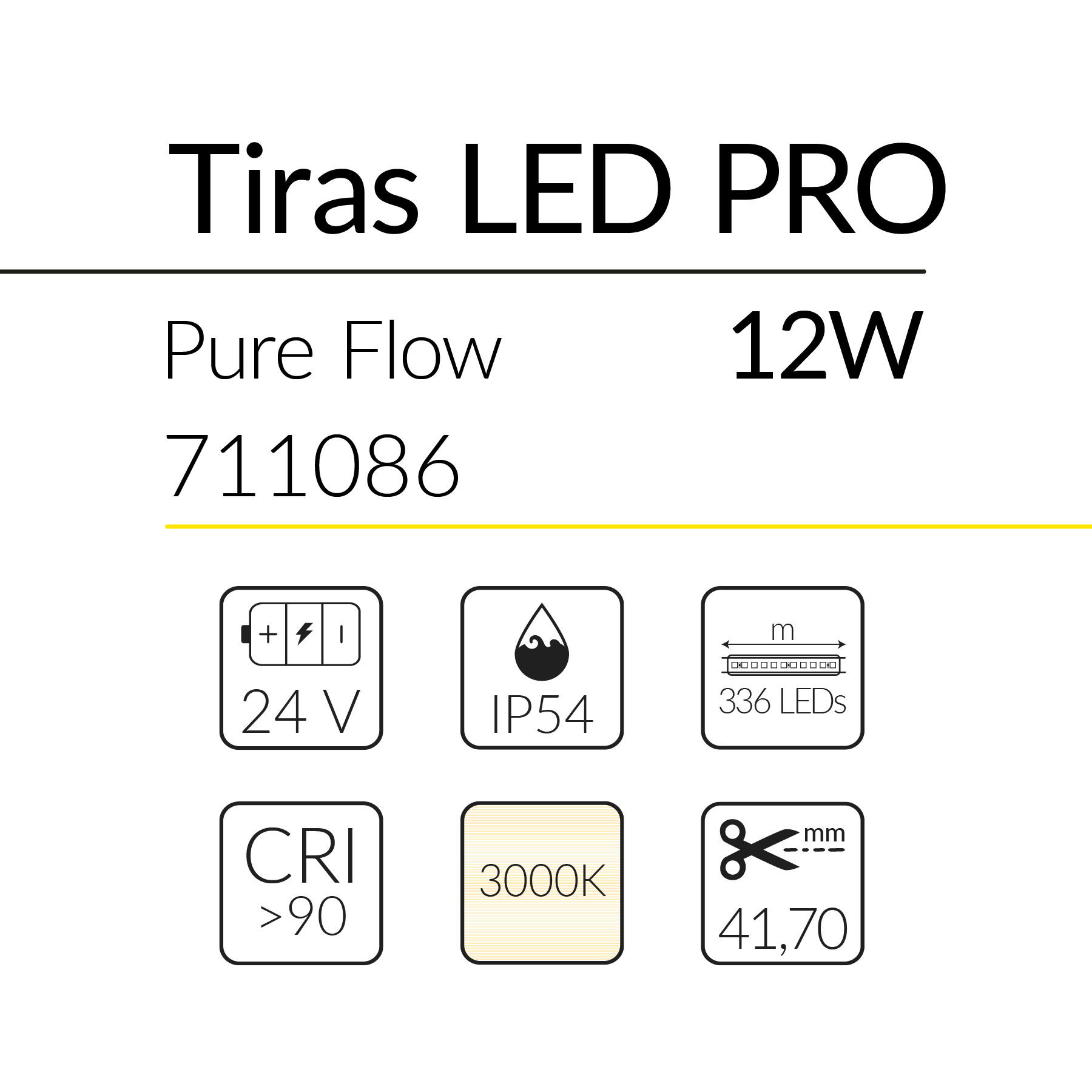 Tira LED profesional de flujo puro (12W/m) y 24V, que emite una luz blanca cálida de 3000K. Es ideal para uso en interiores o zonas con humedad moderada (IP54), perfecta para crear ambientes naturales y confortables. Es totalmente regulable para adaptar la intensidad lumínica y cuenta con una garantía sólida de 3 años. Driver no incluido.
